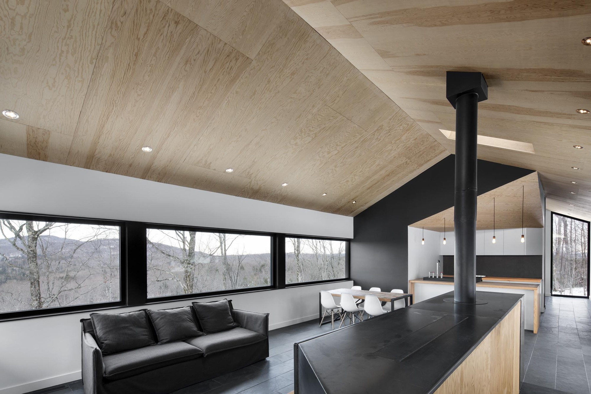 Le studio d’architecture NatureHumaine, basé à Montréal, signe le projet Bolton Residence. La maison se pose sur un plateau dans la pente naturelle d’un site boisé.