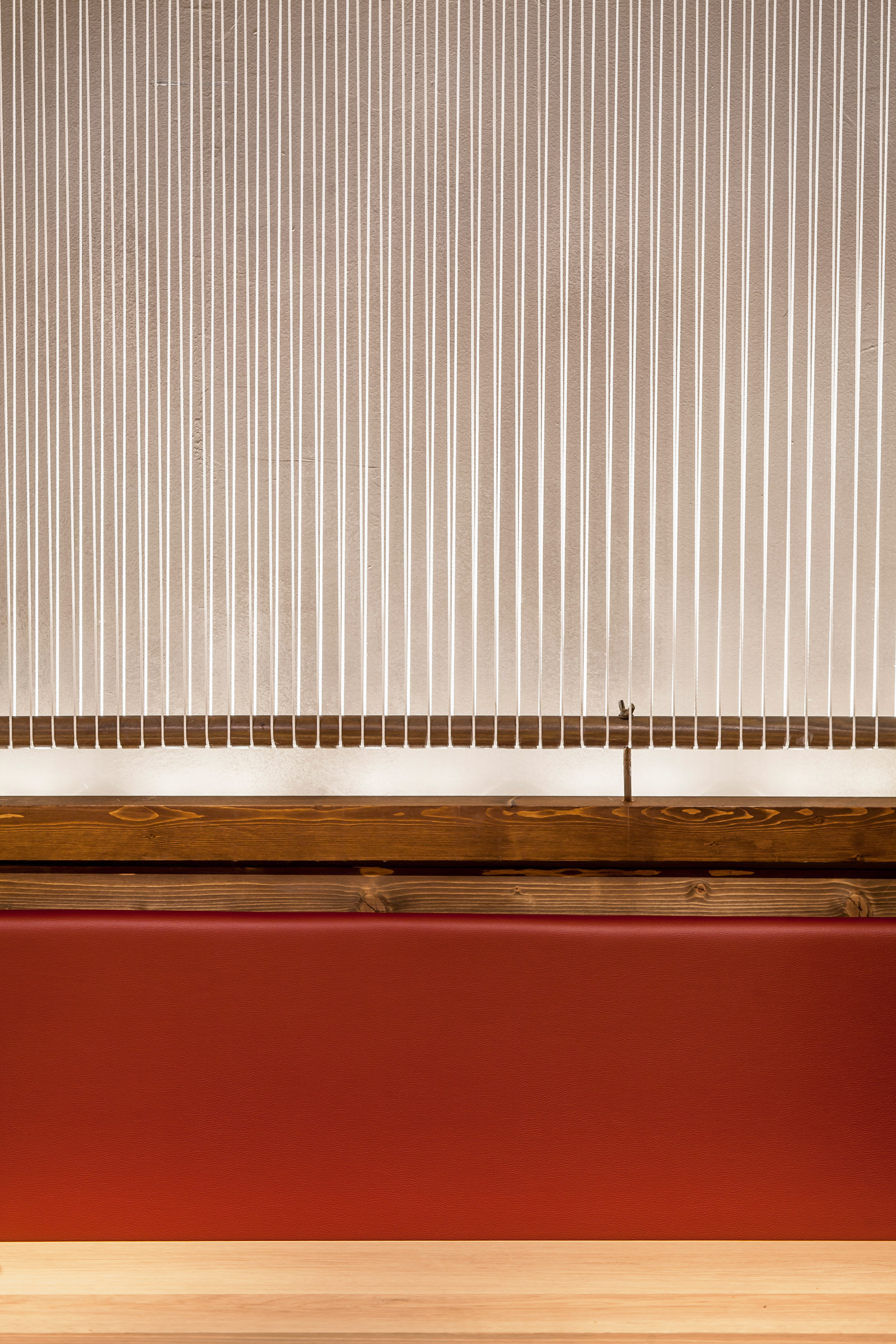 Une explosion de couleurs enveloppent les espaces comme si c’était une seconde peau. La deuxième couleur de la peau est réalisée par référence directe au métier péruvien, offrant une étonnante combinaison de couleurs qui contrastent avec les couleurs japonaises, et révélant les racines des métiers de la culture péruvienne. La réinterprétation du métier péruvien va au-delà de son propre processus de séquençage à travers les murs du restaurant, contribuant ainsi au caractère tridimensionnel de l’espace et insuffle la vie et le mouvement, brouillant les marges qui limitent local.