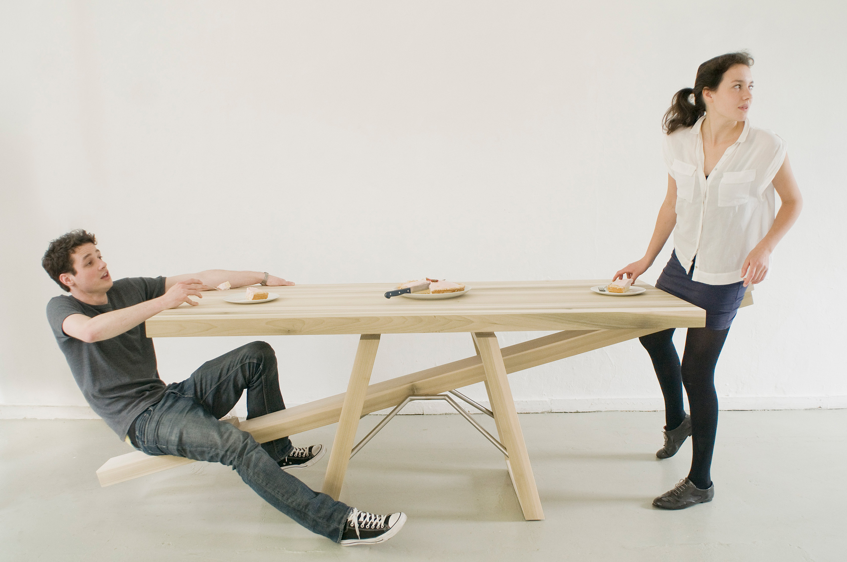 Marleen Jansen développe le sujet « Tafelwip » (forcé volontairement) et le matérialise sous forme de table. C’est comme un jeu éducatif.
