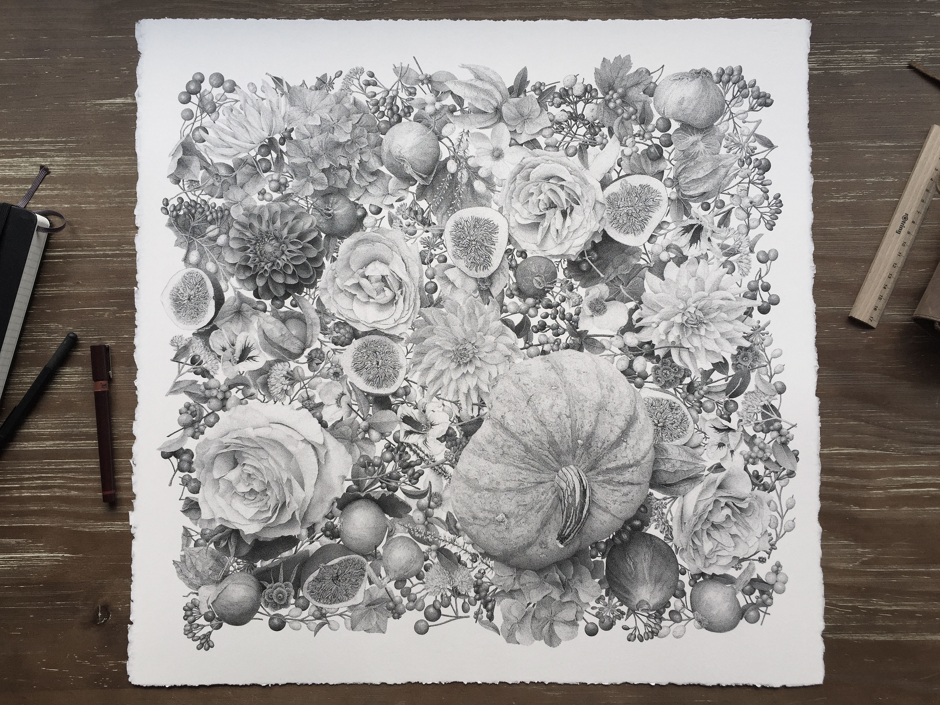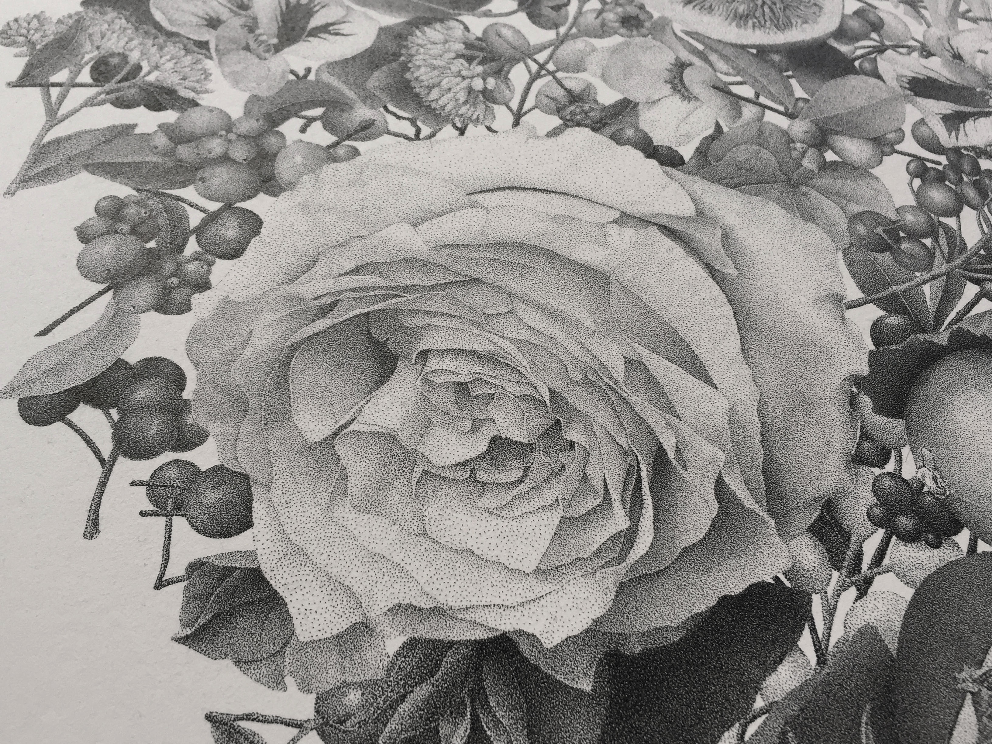Xavier Casalta est un artiste français qui utilise la technique du pointillisme. Cette oeuvre « Automne » contient environ 7 millions de points encrés, soit 370 heures de travail.