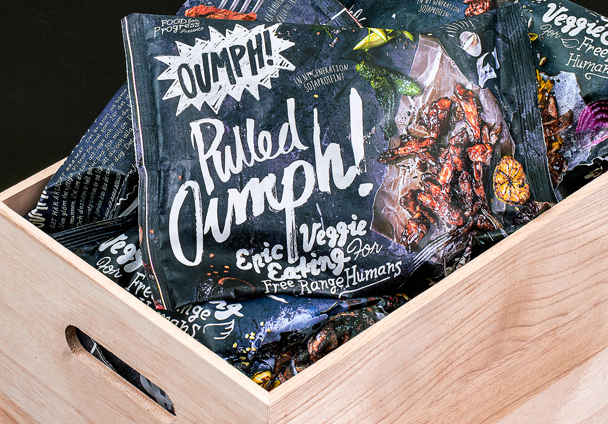 Oumphs fait partie de la nouvelle génération de produits alimentaires innovants, à base de 100% d’haricot. C’est incroyablement bon pour l’environnement, et facile à cuisiner. Le studio de design suedois Snask a été en charge de la création de l’identité de marque ainsi que la conception d’emballage.